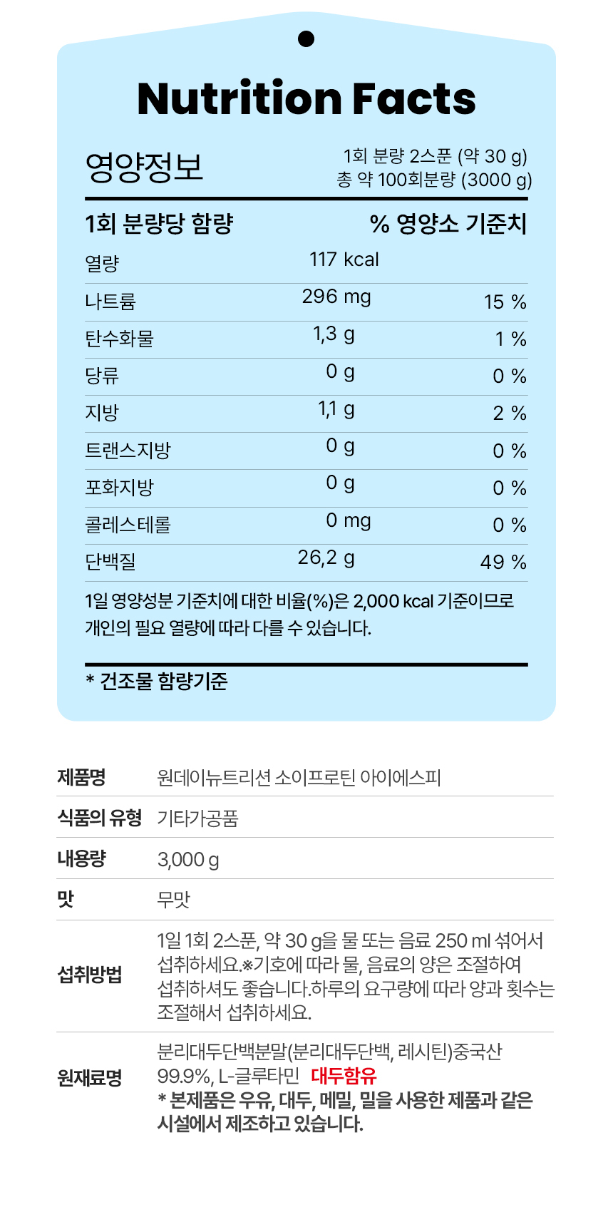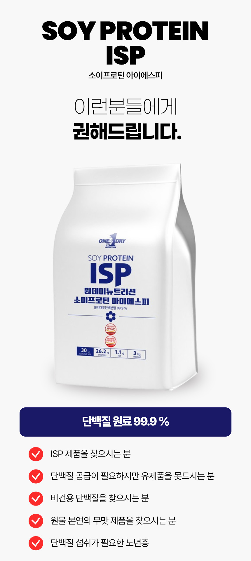 韓國ONE DAY Bag plant Soiprotein Women Protein powder ISP 3000g