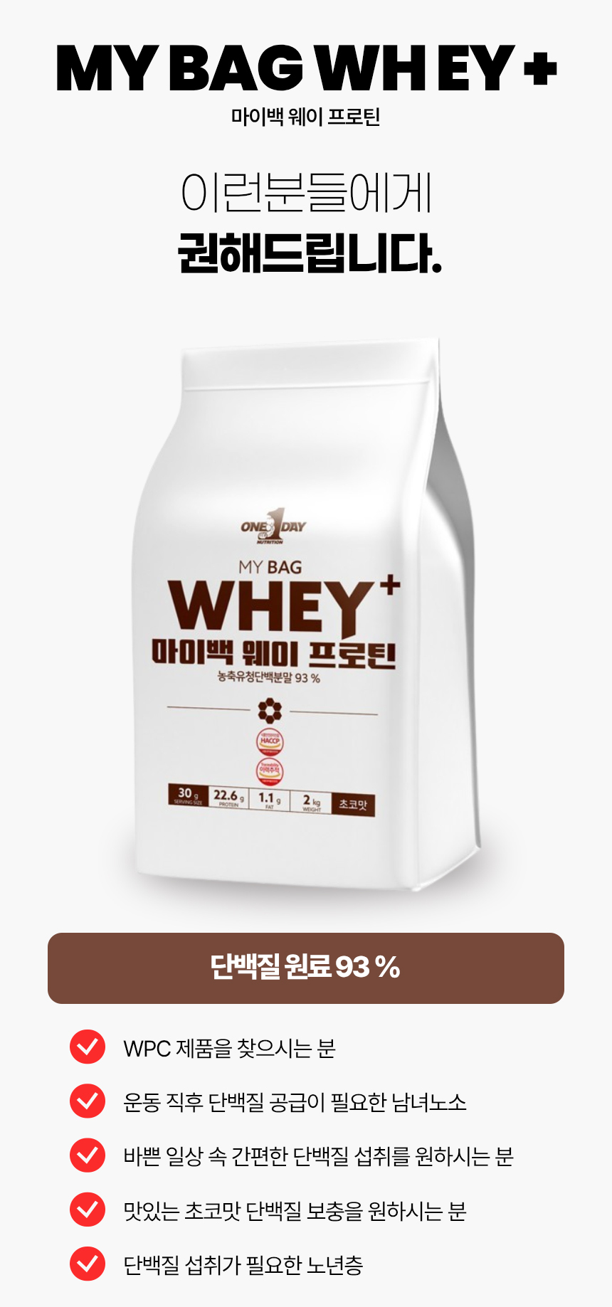 韓國ONE DAY 22.6g Protein 低糖低脂WPC chocolate flavor 2kg