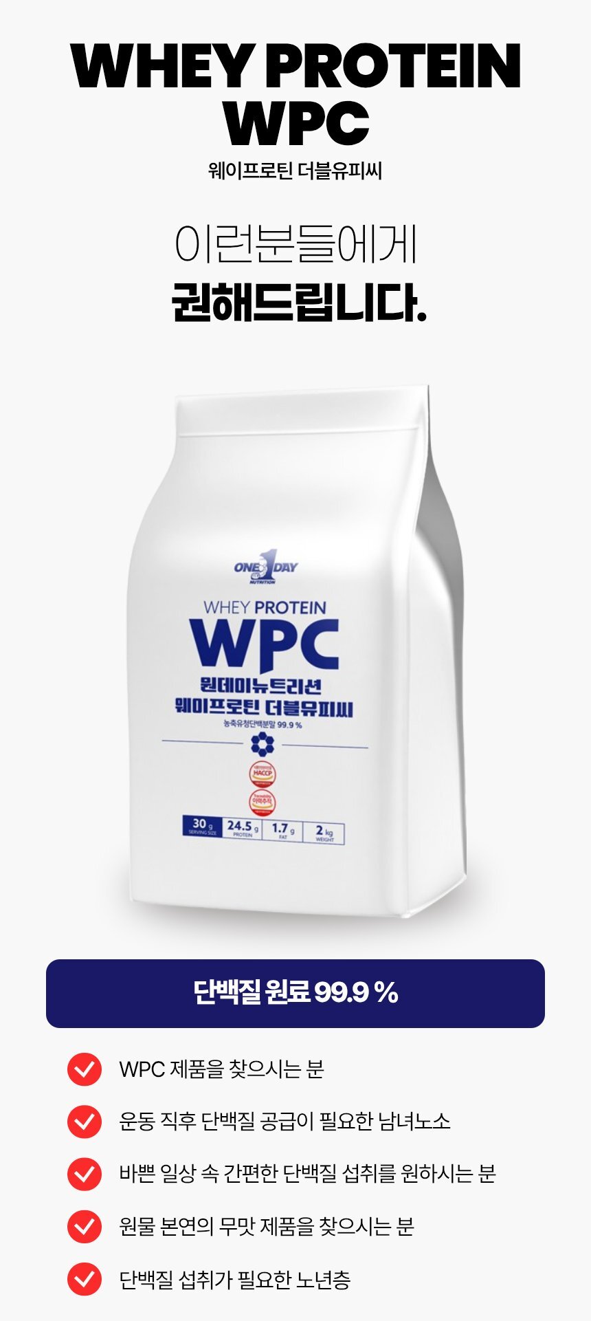 韓國ONE DAY WPC 24.5gProtein 低糖低脂supplement 2kg